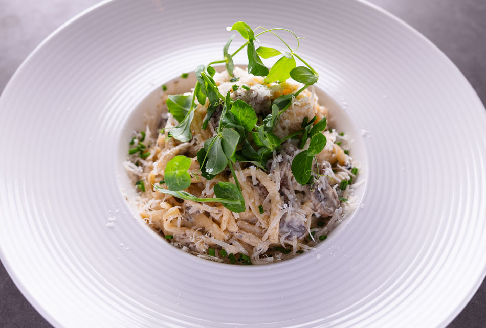 Friske linguine, svampe, trøfel, cremet flødesauce & parmesan