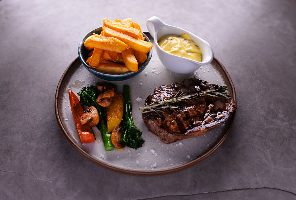 300 gram ribeye, grilet garniture, grove fritter & bearnaise